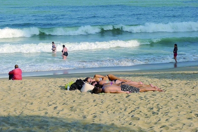 芽庄的海滩绵延数里,阳光充沛,凉风习习,沙滩上随处可见仰卧俯卧晒日光浴的游客。