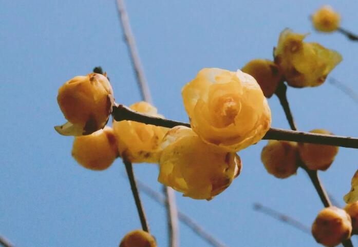 最近,武汉气温骤降,在这阵子极寒天气下,有一种花却悄无声息的开放了。它在萧瑟地冬日里送上一抹金黄的芬芳,给无情的寒风夹杂着一丝清香,使人心醉。它就是蜡梅——在百花凋零的隆冬绽蕾,斗寒傲霜。
